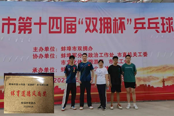 此次比赛,我校运动员积极拼搏、团结进取的良好精神风貌,赢得了学校的美誉度,荣获了蚌埠市第十四届“双拥杯”乒乓球比赛体育道德风尚奖,并为下届比赛争取更好成绩打下良好基础。(特约通讯员:徐建科摄影:王志远 审核:余德锋 )