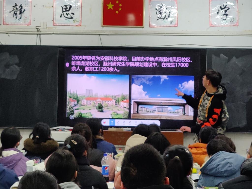 动植物检疫212班赵长旭及其团队三人组成的实践团队赴安徽机电工程学校开展了寒假实践活动。实践团探望了高中班主任与任课老师,向老师讲述了自己在大学的变化与成长,由衷感谢老师们的教诲之恩。随后实践团队来到了高三毕业班,向同学们播放了米乐官方网站_米乐(中国)股份有限公司,招生宣传片,向学弟学妹们传授了各自的学习经验,并且耐心回答同学们在专业选择、报考和学习上的问题。