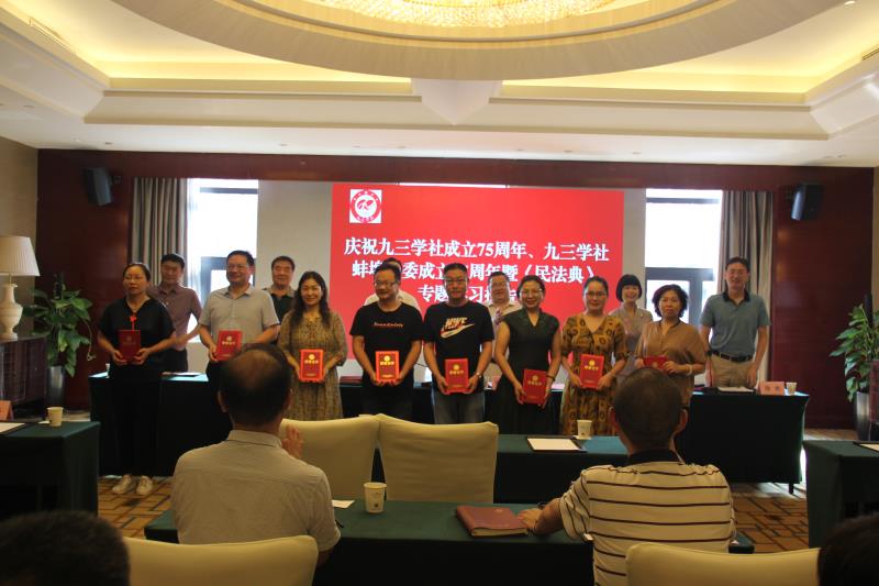 8月28日下午,九三学社蚌埠市委召开了庆祝九三学社成立75周年、九三学社蚌埠市委成立35周年暨《中华人民共和国民法典》专题学习报告会。蚌埠市副市长、社蚌埠市委主委陈忠卫,中共蚌埠市委统战部常务副部长华如军,原市政协副主席、原社蚌埠市委主委张秉臣以及我社社员等50余人参加了报告会。市委统战部常务副部长华如军应邀出席并讲话。会议分两个阶段进行,社蚌埠市委主委陈忠卫,社蚌埠市委副主委李小军分别主持了会议。我校九三学社小组组长程郁昕、社员华金玲参会会议。