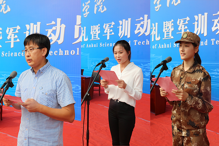 9月21日上午,我校龙湖校区2020级新生开学典礼暨军训动员大会在龙湖校区举行。校党委书记蒋德勤,党委副书记、校长李震,党委副书记韦文联,党委委员、副校长黄远友,党委委员、副校长黄友锐,党委委员、副校长李升和,陆军装甲兵学院蚌埠校区党委常委、管理保障处处长刘新,保障处参谋李国梁,陆军装甲兵学院蚌埠校区教练勤务营二级军士长、龙湖校区军训团团长牟江伟等出席大会并在主席台前排就座。大会由黄远友主持。