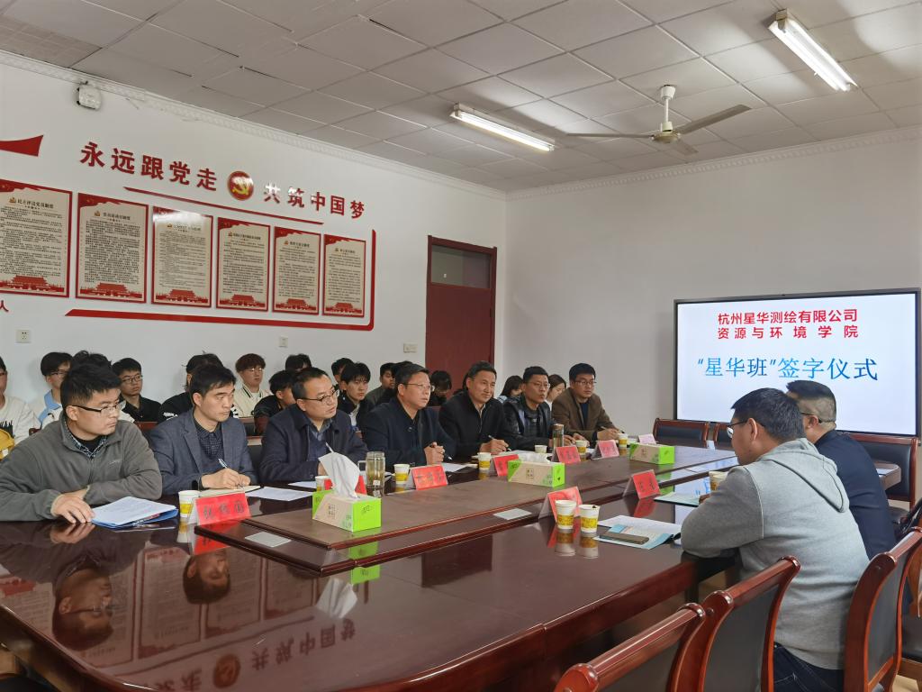 4月13日下午,我校资源与环境学院与杭州星华测绘有限公司举行产学研合作签约暨“星华班”授牌仪式。