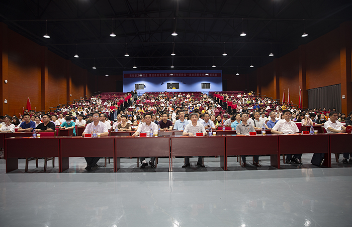 为庆祝中国共产党成立100周年,贯彻落实习近平新时代中国特色社会主义思想,弘扬以爱国主义为核心的伟大民族精神,鼓舞全校师生积极投身社会主义现代化建设事业,激发青年学子爱党、爱国、爱校情怀。6月21日,我校“永远跟党走”庆祝建党100周年暨欢送2021届毕业生文艺汇演在凤阳校区大学生活动中心隆重举行。校党委书记蒋德勤,党委副书记、校长李震,党委副书记韦文联,党委委员、纪委书记王强,党委委员、副校长李升和,党委委员、宣传(统战)部部长卫胜出席活动,与800余名师生欢聚一堂,共襄盛举。