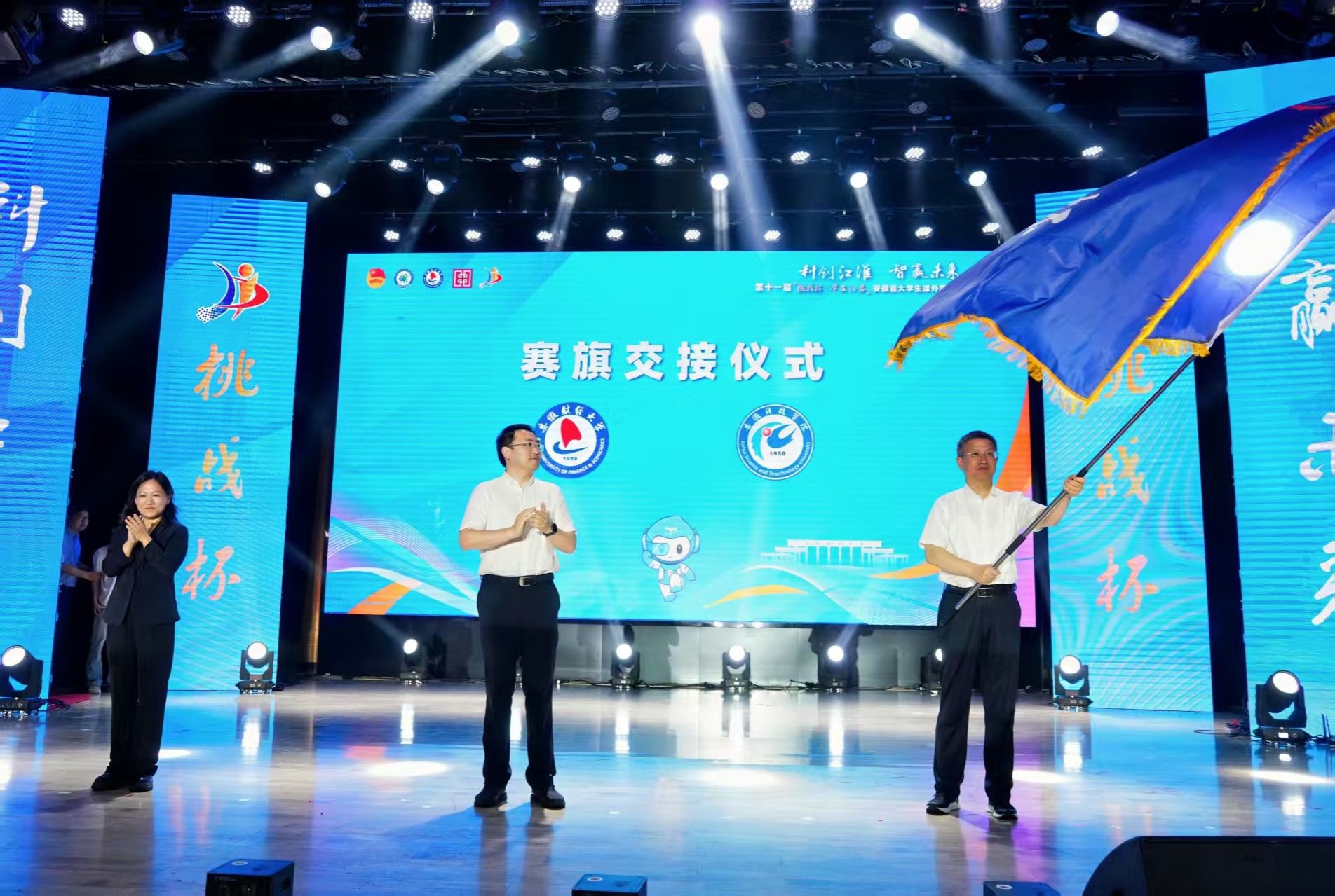 闭幕式上,校党委副书记曹付忠从团省委副书记周宇手中接过了全省“挑战杯”赛旗,标志着我校正式接棒,成为第十二届“挑战杯”安徽省大学生创业计划竞赛承办高校。这是学校办学实力和创新创业教育成果的又一次有力彰显,标志着学校在培养创新型人才、推动大学生创新创业实践方面受到广泛认可。学校将充分发挥自身优势,整合各方资源,精心筹备赛事,以高规格的赛事组织、高质量的服务保障、高水平的学术交流,确保竞赛的顺利进行。