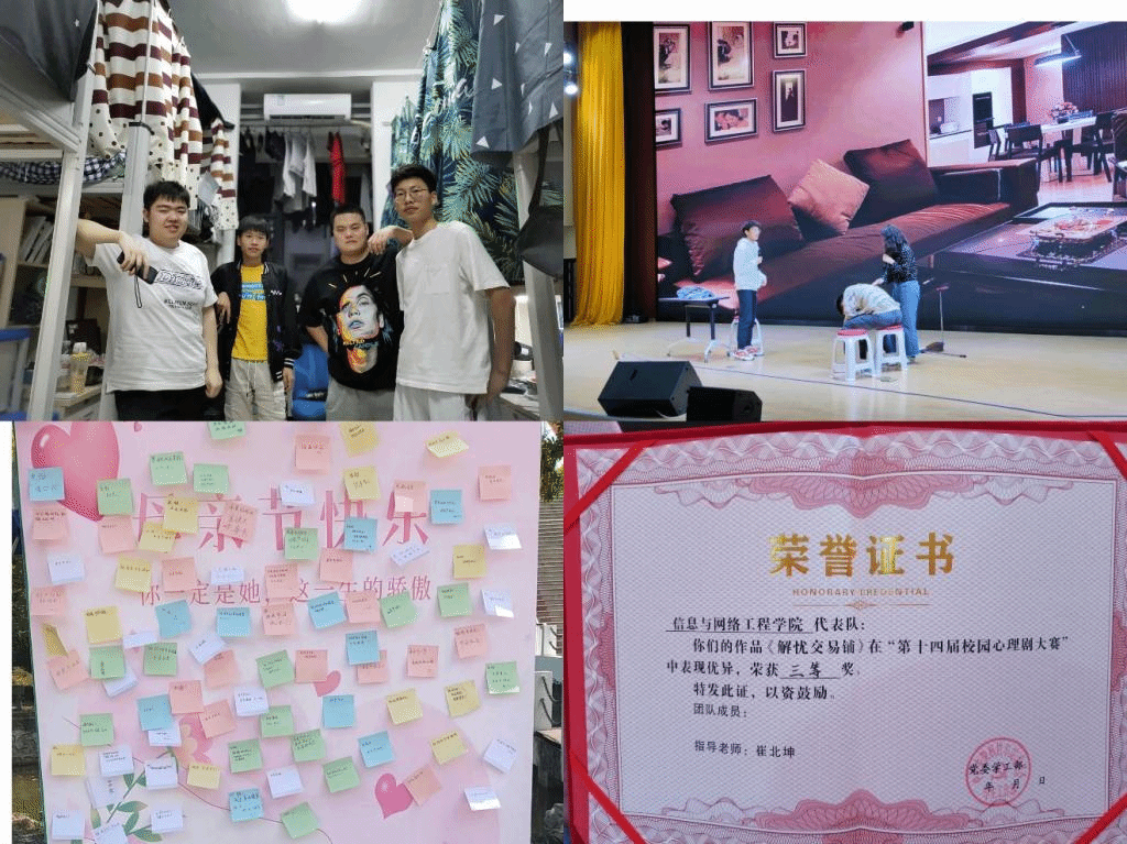 5月1日前,信息与网络工程学院参加米乐官方网站_米乐(中国)股份有限公司,第十四届校园心理剧大赛,本次比赛以学院为单位,共有6支队伍参加了本次比赛。在比赛过程中,各队参赛作品涵盖了家庭亲子关系、心理健康咨询、学业问题、情感与恋爱等方面,参演同学将自身的真实情感融入所扮演角色之中,用极具感染力的语言,丰富的肢体动作将生活学习中遇到的问题还原再现,并通过剧情再现的方式告诉同学如何化解心理问题。最终,我院获得本次心理剧大赛三等奖的成绩。