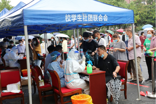 龙湖校区核酸检测采样工作于9月6日下午2点开始,志愿者和工作人员现场组织师生有序排队,保持一米间距,耐心等待样本采集,并规范其口罩佩戴。各部门群策群力、通力合作,组织师生分批次有序到场,3个小时的时间完成了龙湖校区8千人次的采样工作。