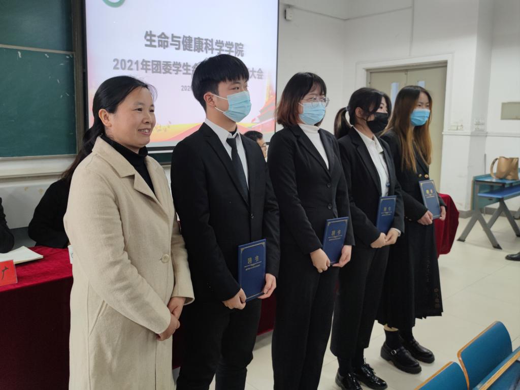 12月1日下午,生命与健康科学学院在新知楼B303教室召开2021年团委学生会学生干部调整大会。学院党委副书记彭丽萍、党政办公室主任王传林、正科级辅导员兼正科级组织员邓艳萍、团委副书记姜毅、专职辅导员孙玉楼及专职辅导员张迪出席会议。上一任学生会部分成员和现任团委学生会全体成员参加会议。会议由姜毅主持。