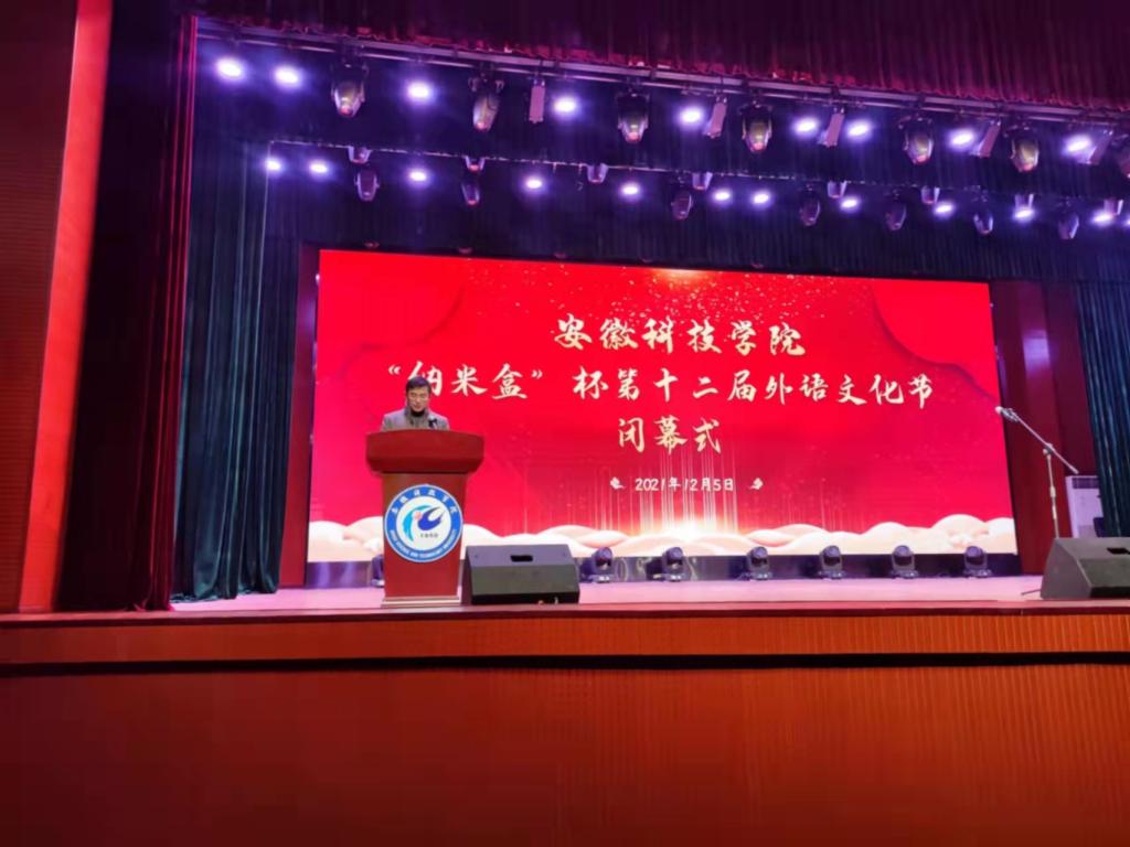 12月5日晚上,校第十二届外语文化节闭幕式暨外国语学院2021年迎新晚会在大学生活动中心顺利举办。校党委委员、宣传(统战)部长卫胜,国际交流与合作处处长刘东楼,党委宣传(统战)副部长、团委书记黄立义,外国语学院院长陈德用、党委副书记张海亮等领导出席闭幕式。本次闭幕式由陈德用主持。