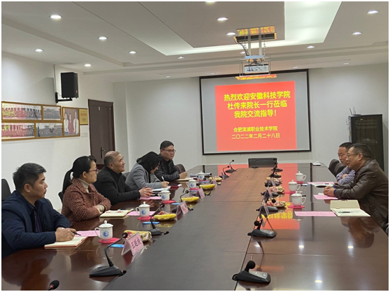 调研会上,安徽中澳科技职业学院、合肥滨湖职业技术学院、马鞍山职业技术学院、铜陵职业技术学院相关学院领导对我们的来访表示热烈欢迎。双方就米乐官方网站_米乐(中国)股份有限公司,、校园建设、专升本情况、校企合作、招生就业、以及专业的招生规模、实训实习、就业创业、人才培养方案制定等情况开展了深入座谈。