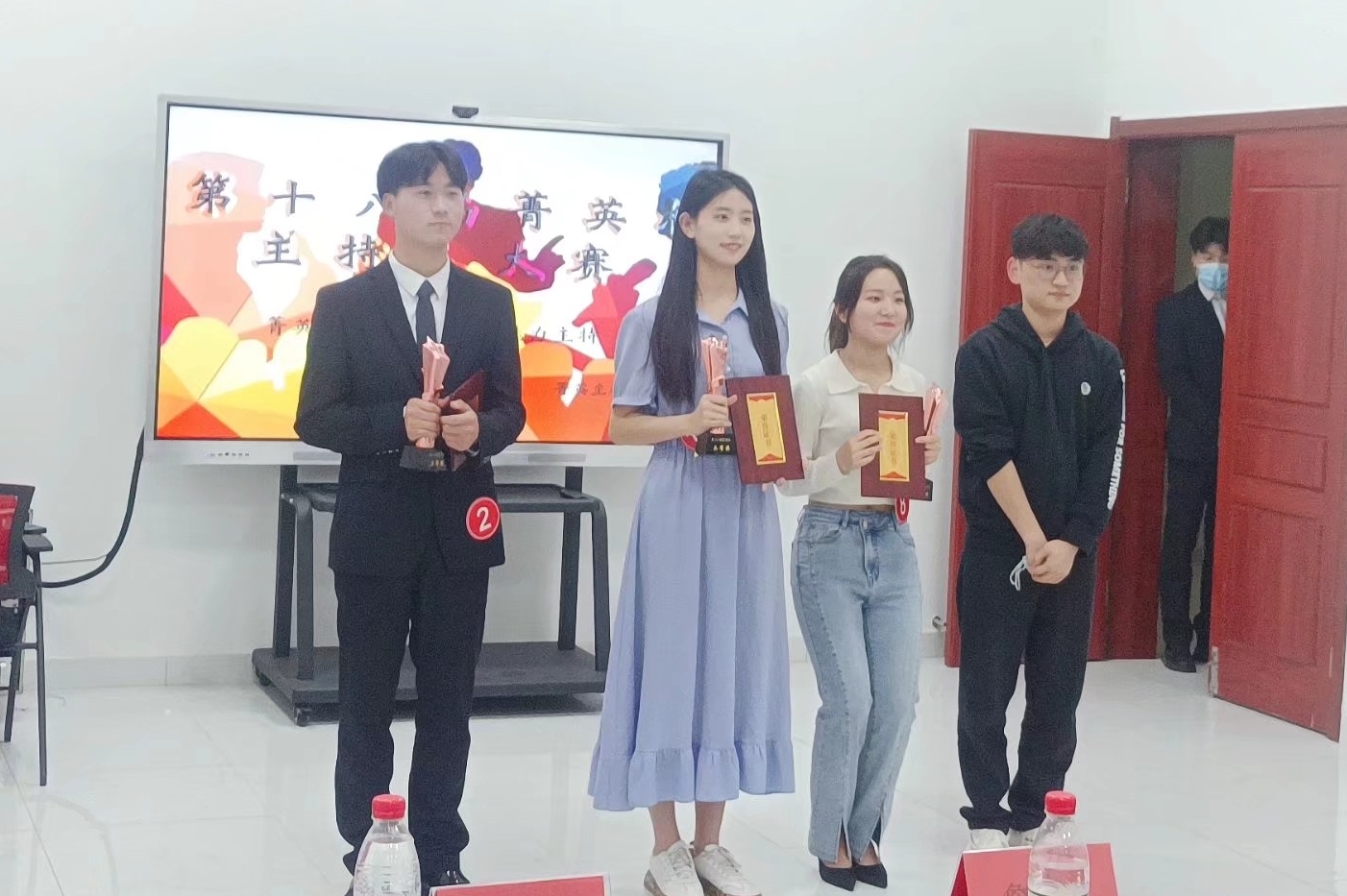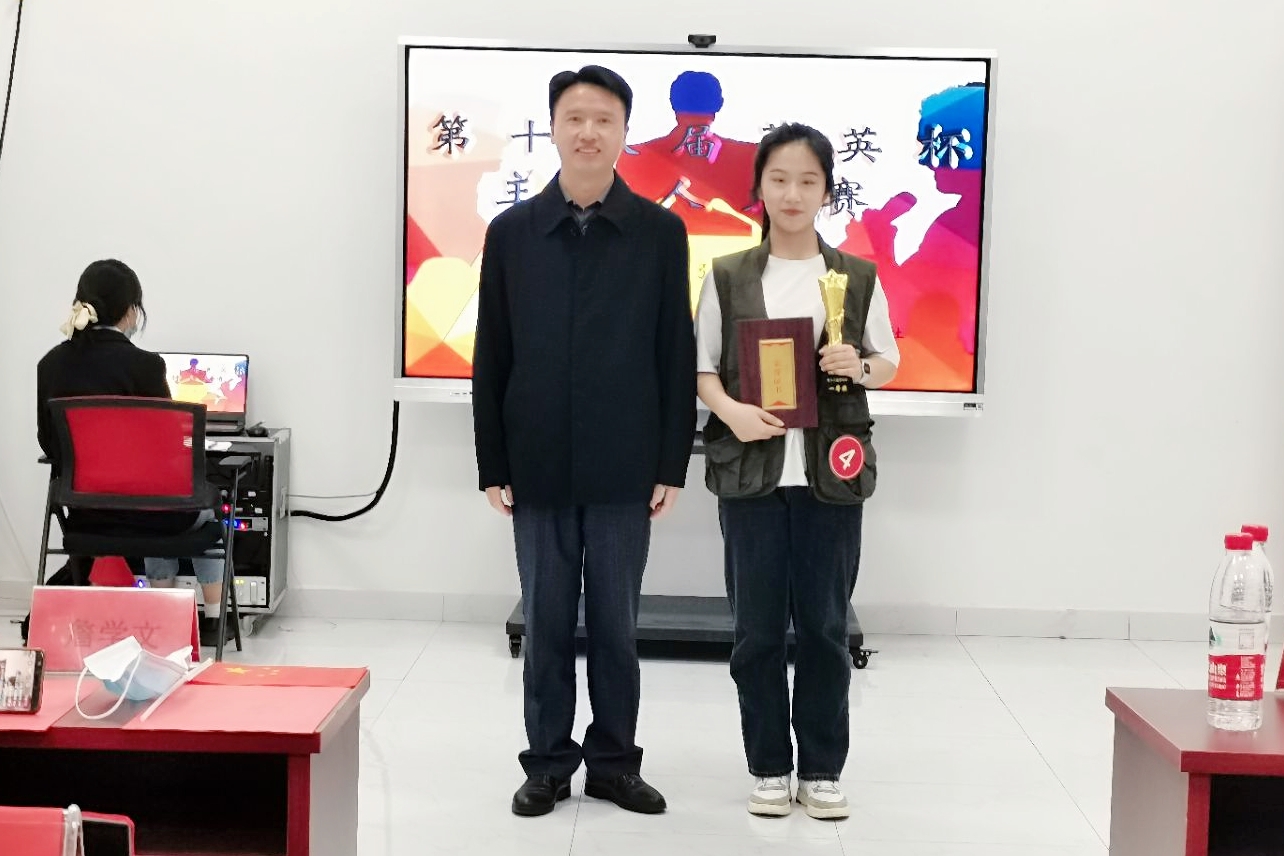 经过激烈的角逐,章思佳荣获决赛一等奖,梅静怡、王梦雨荣获决赛二等奖,朱平磊、周辰星、徐鹿萍荣获决赛三等奖。詹学文、张古品与人文学院学生会主席杜秦阳分别为选手们颁发了奖杯与证书并合影留念。比赛环节结束后,詹学文对本届菁英杯举办历程进行了回顾,也对各位选手的精彩表现做了点评,指出了他们的优点及不足之处,同时对没有获奖的选手进行了鼓励,希望大家再接再厉,更上一层楼。