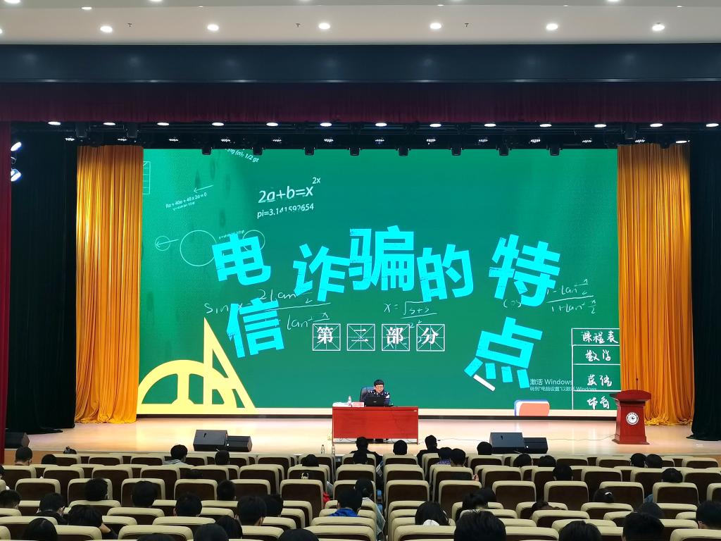10月26日下午,化学与材料工程学院于龙湖校区东辅楼报告厅举办反电信诈骗专题讲座。讲座由龙湖派出所民警安彪主讲,全院近300名寝室长参加。