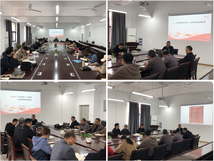全体人员专心听讲、认真记录,表示今后将结合自己的教学、科研等工作,更加系统深入地学习领会党的二十大精神,真正做到学思用相结合,切实用党的二十大精神武装头脑、指导实践,为学院高质量发展贡献更大的力量!(特约通讯员:陈凯 摄影:陈凯 审核:王振其 编辑:张威)