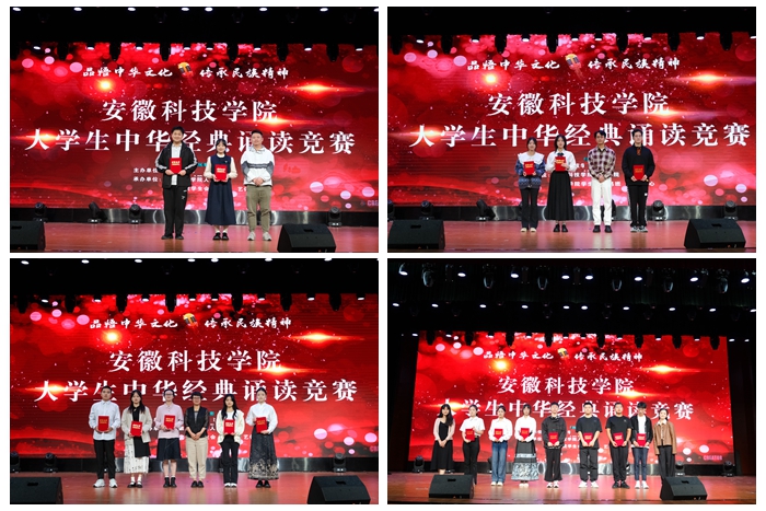 为贯彻《教育部等九部门关于开展第26届全国推广普通话宣传周活动的通知》的文件精神,助力推广普通话,发挥语言文字的浸润、助力作用,激发青年大学生奋斗精神与爱国情怀,9月25日下午,由教务处主办、人文学院承办的米乐官方网站_米乐(中国)股份有限公司,大学生中华经典诵读竞赛决赛在大学生活动中心成功举行。蚌埠市广播电视台主持人吕彪,凤阳县融媒体中心新闻部编辑记者胡松、马克思主义学院教授王凤杰、学生处康佳蓉、人文学院专业课教师曹宋艳担任此次比赛评委。