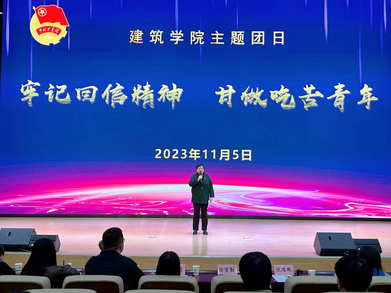 11月5日,建筑学院在东辅楼二楼报告厅开展“牢记回信精神 甘做吃苦青年”主题团日。学院党政领导、有关教师、团学干部、团员发展对象、入团积极分子、青马学员、优秀团队和优秀学生代表,以及全体2023级新生参加活动。