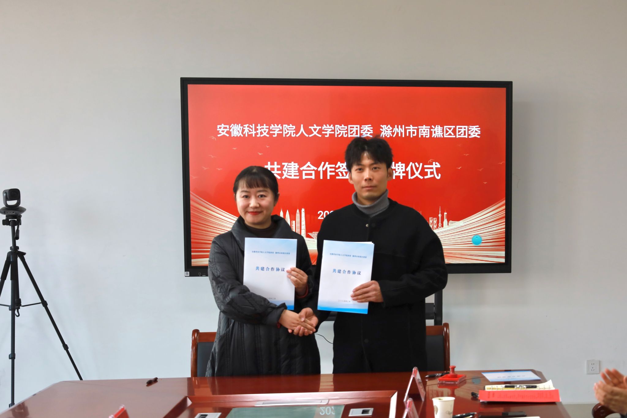 为推进校地团学资源融合,实现优势互补、合作共赢,3月19日下午,人文学院团委与滁州市南谯区团委举行共建合作签约授牌仪式。共青团滁州市委书记李国金,副书记戴莺,南谯区委常委、组织部部长程娟,共青团南谯区委书记徐迟,学院党委副书记、院长李晓东,正处级组织员张严政,副院长牛永辉,党委副书记李沙娜,党政办副主任方明旺,团委副书记焦雪松等出席,仪式由张严政主持。