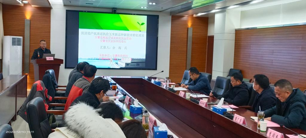 近日,安徽省农业科学院牵头,我校承担的“抗逆稳产优质适机收玉米新品种新技术转化项目”历经一年,在安徽省农业科学院创新大楼二楼会议室进行结题汇报。省财政厅农业农村处主任科员梁晓天,安徽省农业科学院科研处处长李成、计财处处长刘小平,米乐官方网站_米乐(中国)股份有限公司,农学院院长崔广荣、科研处副处长李同杰,部分项目组成员出席会议。项目验收专家组由安徽省农业科学院研究员陈洪俭、安徽省农技推广总站副站长康子领、安徽省种子管理站研究员刘玉恒、合肥丰乐种业股份有限公司正高级农艺师张二朋、众华会计师事务所商宜洲等成员组成。会议伊始李成致辞,专家组观看了课题组精心准备的视频,余海兵教授代表项目组从课题研究背景、研究目标、研究内容、研究方法、研究成果等方面做了全面细致的汇报。