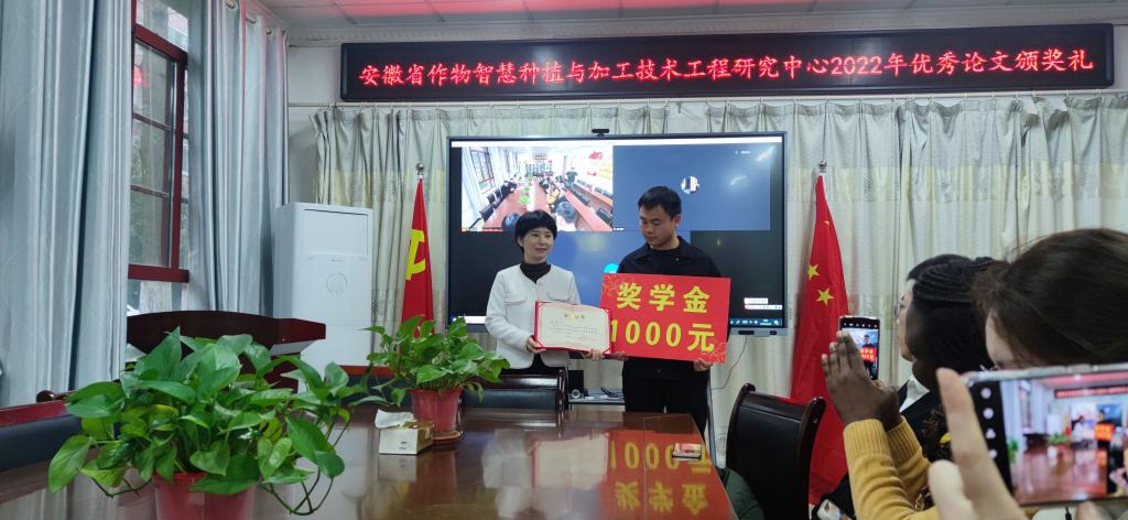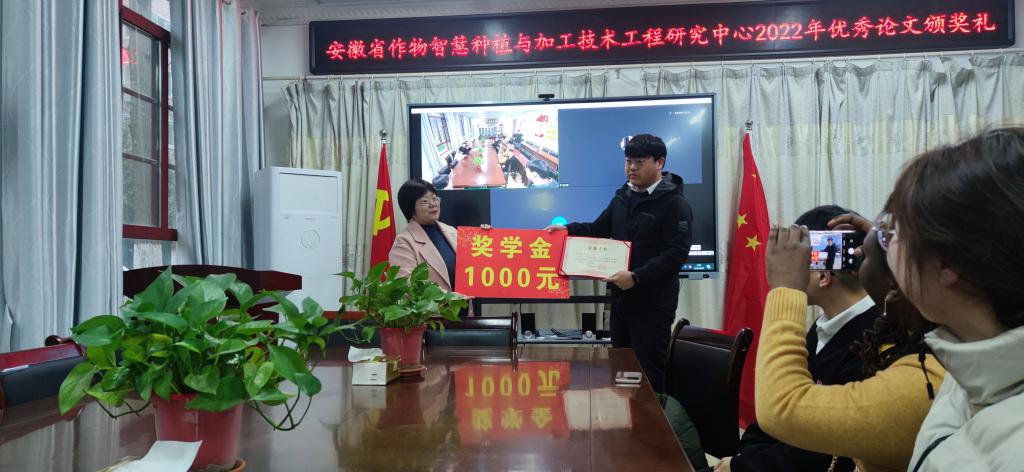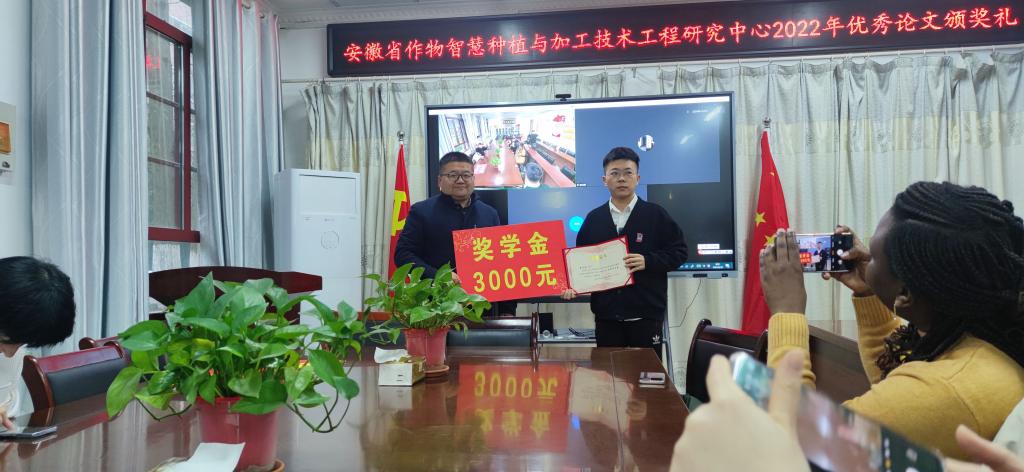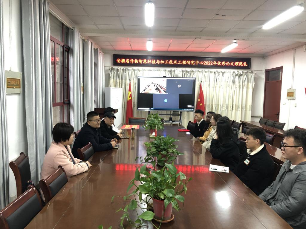 3月22日上午,安徽省作物智慧种植与加工技术工程研究中心2022年度优秀论文颁奖典礼在米乐官方网站_米乐(中国)股份有限公司,农学院会议室举行。农学院副院长李文阳、安徽省作物智慧种植与加工技术工程研究中心主任任兰天、及部分团队成员邵庆勤、甄凤贤及课题组全体研究生参加了本次颁奖典礼。
