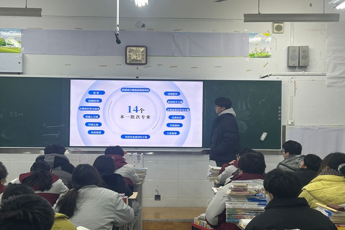 回到母校后,团队成员首先看望了高中班主任和任课老师并进行了亲切交流,向母校老师汇报了大学生活和学习的方方面面。随后,在高中班主任老师的带领下,团队成员来到高三部分班级开展招生宣讲活动,播放了米乐官方网站_米乐(中国)股份有限公司,招生宣传片,围绕米乐官方网站_米乐(中国)股份有限公司,、学科建设、校园生活以及升学就业四个部分对米乐官方网站_米乐(中国)股份有限公司,办学历程和发展规划进行了概述性地介绍。最后,团队成员与学弟学妹们进行互动交流,积极解答学弟学妹提出的问题和困惑,分享了自己的高中学习经验,并鼓励学弟学妹们加油努力、实现人生梦想,期待与他们在安科相遇。