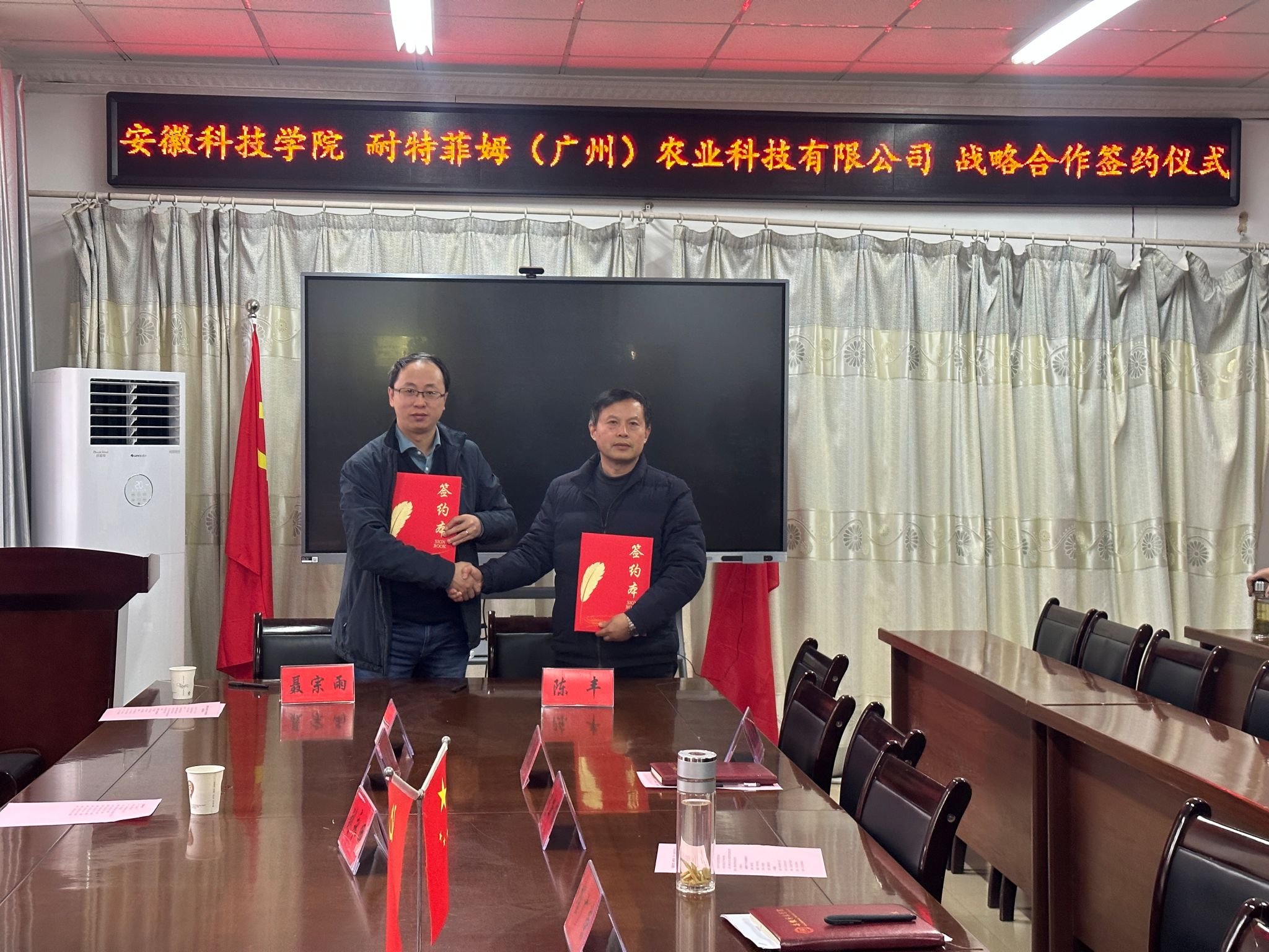 为推进玉米单产提升工程,破解“卡脖子”关键技术,2月28日上午,我校和耐特菲姆(广州)农业科技有限公司在农学院会议室签订战略合作协议。我校科研处、农学院、耐特菲姆(广州)公司和五河县农技推广中心等相关领导和教师参加。会议由农学院院长崔广荣主持。