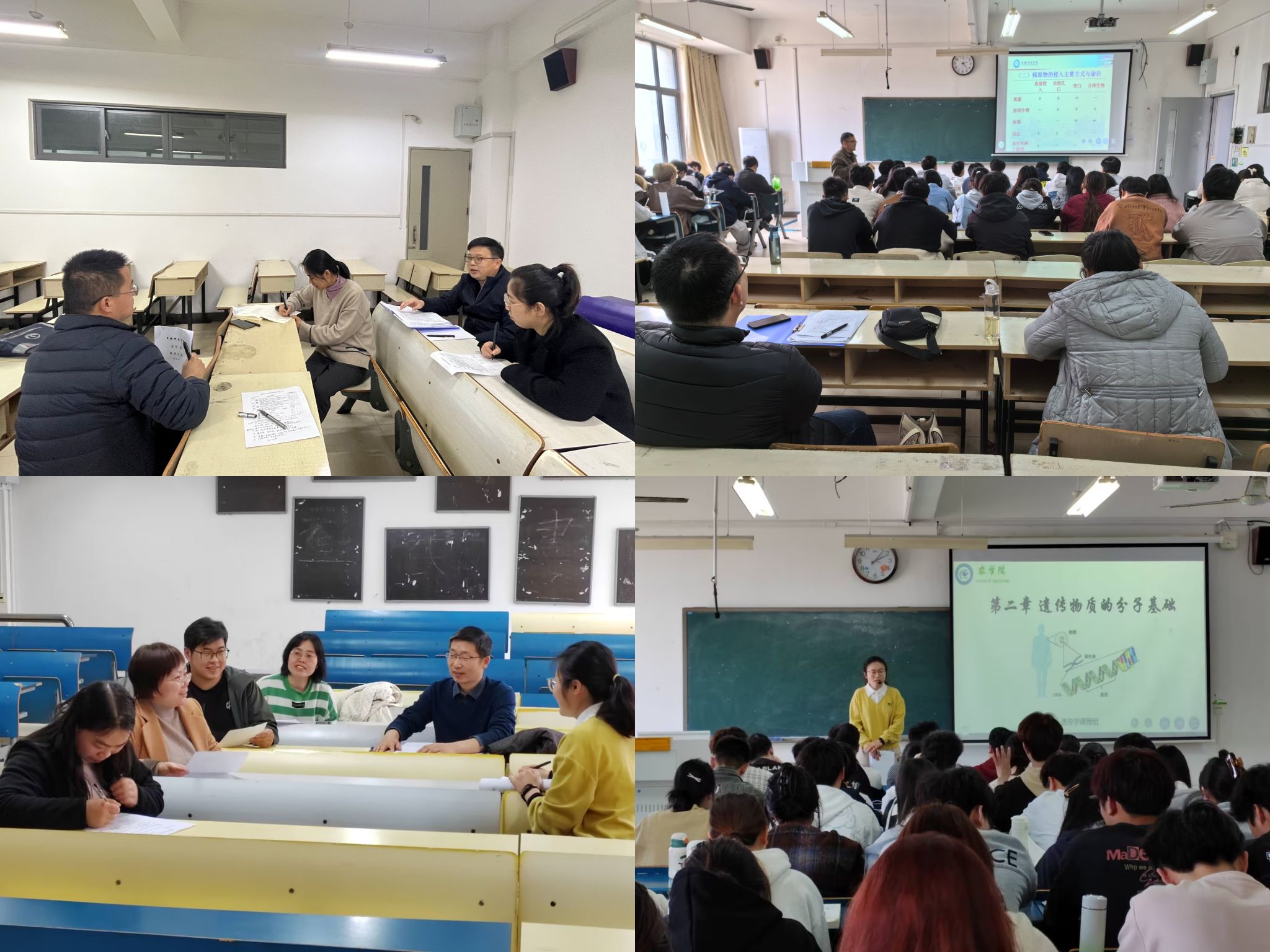 分别现场听了近两年入职的张享享博士主讲的《植物保护学》、陈先连博士主讲的《种子生物学》、冯婷婷博士主讲的《遗传学》和钱铭博士主讲的《遗传学实验》等课程。课后党政领导、系主任带领课程组成员分别进行了交流研讨,一致认为四位青年教师态度端正、教学准备充分、课件制作精美、智慧化教学手段运用和师生交流较好,但是课程内容熟练程度、重难点把握、思政元素融入、课堂把控能力、理论联系实际等方面还需要进一步加强。