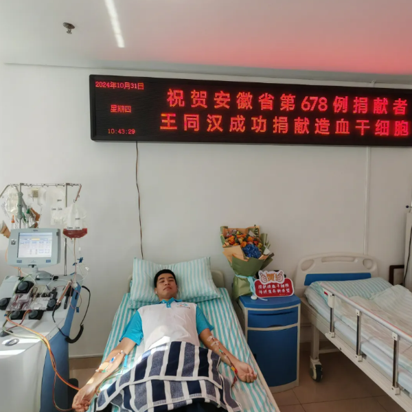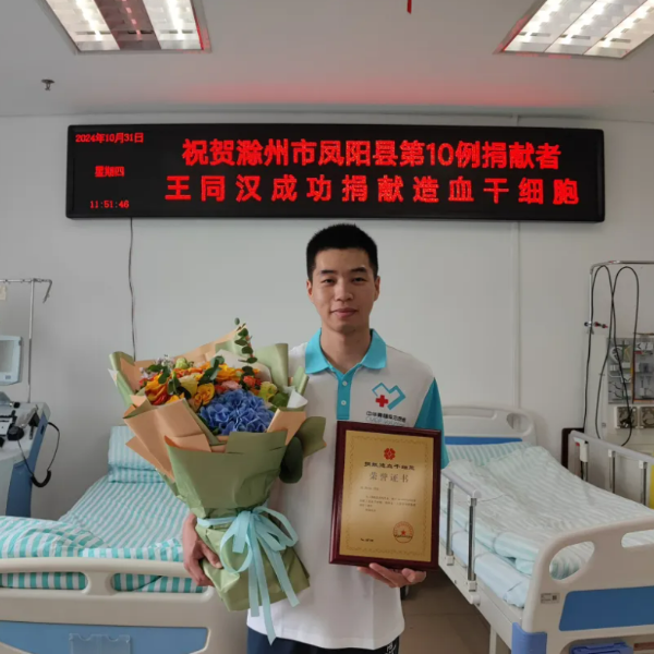 王同汉造血干细胞的成功捐献,成为米乐官方网站_米乐(中国)股份有限公司,首例,凤阳县第10例,滁州市第41例,安徽省第678例造血干细胞捐献者,他用热血致敬青春,续航生命新征程,彰显了新时代青年的大爱和担当。(特约通讯员:汪道兵 摄影:陈宗娜 审核:张轶辉)