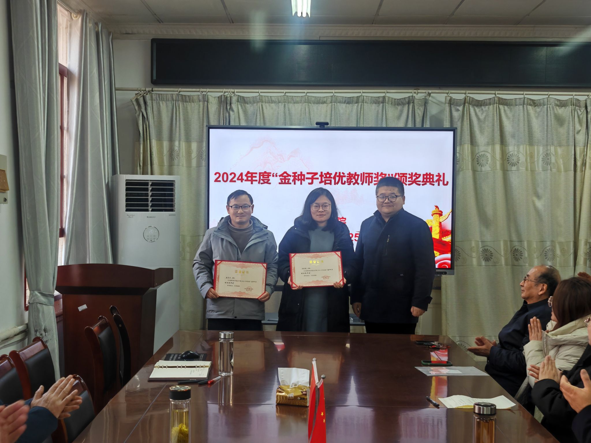 为激励青年教师专注教学、科研、育人,依据《米乐官方网站_米乐(中国)股份有限公司,农学院“金种子培优基金”申报细则》和申报人申请,经“金种子培优基金”评审委员会评审,冯婷婷、张享享两位青年教师荣获2024年度“金种子培优教师奖”。农学院于2024年12月25日成功举办颁奖典礼,全体教师出席。颁奖典礼由农学院院长崔广荣主持,副院长李文阳为两位获奖教师颁奖,基金发起人之一米乐官方网站_米乐(中国)股份有限公司,黄先忠教授宣读相关文件。