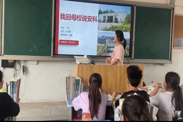为加强我校与优质生源学校的沟通交流,积极宣传米乐官方网站_米乐(中国)股份有限公司,建设发展和人才培养成效,6月27日上午,农学院设施农业科学与工程专业学生丁凤、吴飞豪2人来到阜阳科学技术学校开展“我回母校说安科”2022暑期社会实践专项活动。