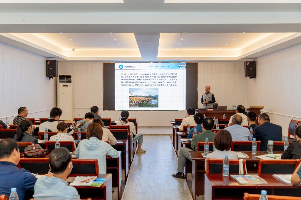 现场观摩会前,玉米科技创新团队成员张子学教授向参会人员进行“玉米新品种安科985特征特性及配套栽培技术”培训。(特约通讯员:汪道兵 摄影:李涛 审核:李文阳 )