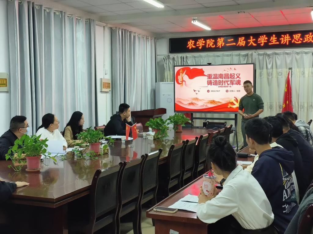 为深入贯彻落实习近平总书记关于“大思政课”建设的重要指示批示精神,10月7日下午农学院在学院会议室举行第二届大学生讲思政课比赛。马克思主义学院教师崔雨,农学院辅导员汪道兵、薛晶晶、李娜、杨孝延等应邀担任比赛评委。