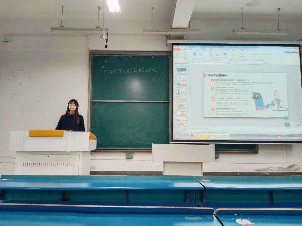 为了增强同学们网络安全意识,提高对网络电信诈骗的识别技能,保护个人财产安全,近日人文学院全体新生开展了“防范电信诈骗”的主题教育。
