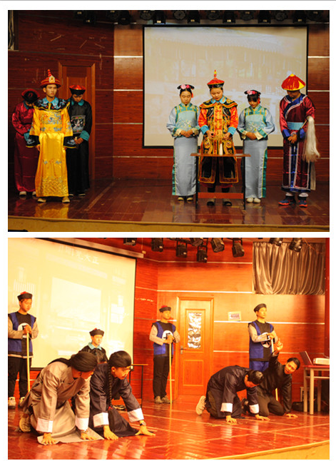 为激发学生学习历史的热情,增强学生的对历史的认知,人文学院于12月19日晚在学术报告厅举办法律历史剧《戊戌变法》暨《中国法制史》翻转课堂情境教学汇报演出。