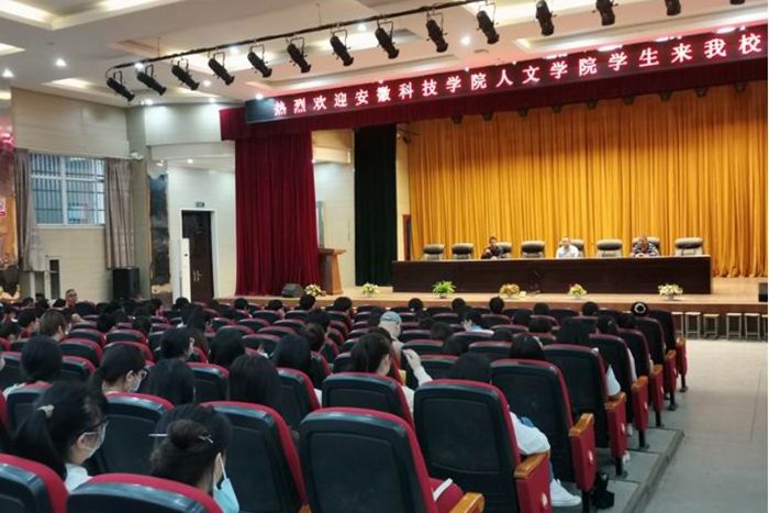 9月26日上午,人文学院汉语言文学专业2019级87名同学赴凤阳三中开展教育实习活动。实习动员会在凤阳三中报告厅举行,凤阳三中校长徐维兵、人文学院中文系主任苏兆龙出席,凤阳三中七年级、八年级语文教师全员参加;动员会由副校长程红岩主持。