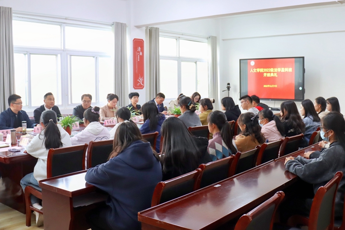 11月7号下午,人文学院2022级法学“盈科班”开班典礼在学知楼324室成功举行。出席开班典礼的有北京盈科(蚌埠)律师事务所管理委员会主任张丽、执业纪律委员会主任李德、青工委主任朱晓磊、人才战略委主任孔繁昌、执行主任王旻;人文学院党委书记杜士凤、副院长李晓东、副院长牛永辉、党委副书记李沙娜、法学系主任张晓云、“盈科班”辅导员鲁冰冰以及“盈科班”全体同学。开班典礼由杜士凤主持。