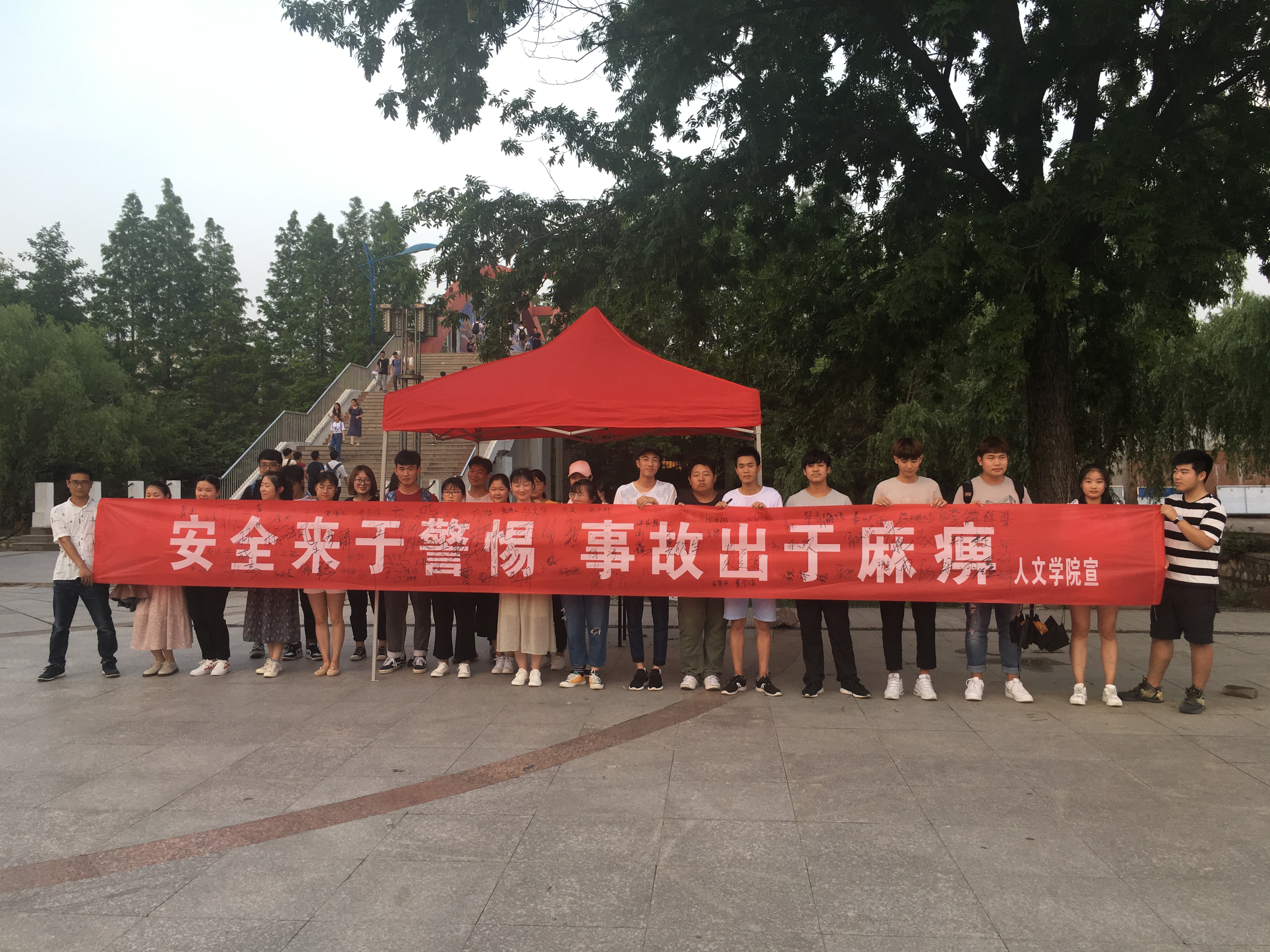 为了进一步提升师生的安全意识和防范能力,着力营造和谐稳定的校园环境,打造平安校园,5月17日晚,人文学院于西区天桥下举行了“校园安全,人人有责”联名签字活动。