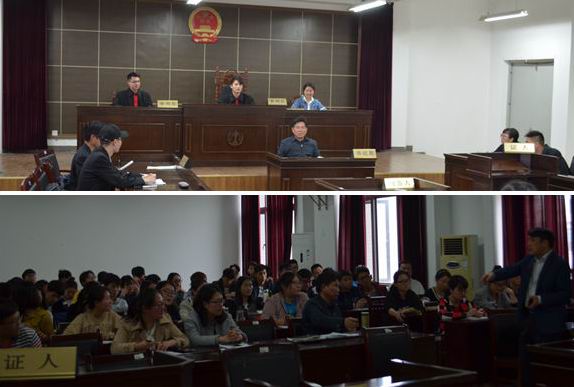 4月21日下午,人文学院2014级法学专业模拟审判在模拟法庭举行。