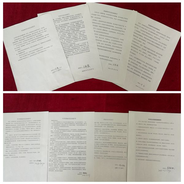 随后,支部每位党员结合自己所担任的职务、所扮演的角色,从自己工作、学习、生活实际几个方面,面对党旗庄严的作出自己的承诺。毕业生党员们围绕爱岗敬业这一主题,分别从文明离校、敢于担当、履职尽责、锐意创新、服务社会、廉洁自律等方面做出了自己的承诺。非毕业班党员主要围绕成长、成才这一主题,从遵纪守法、刻苦学习、诚信文明、志愿服务等方面做出了自己的承诺。
