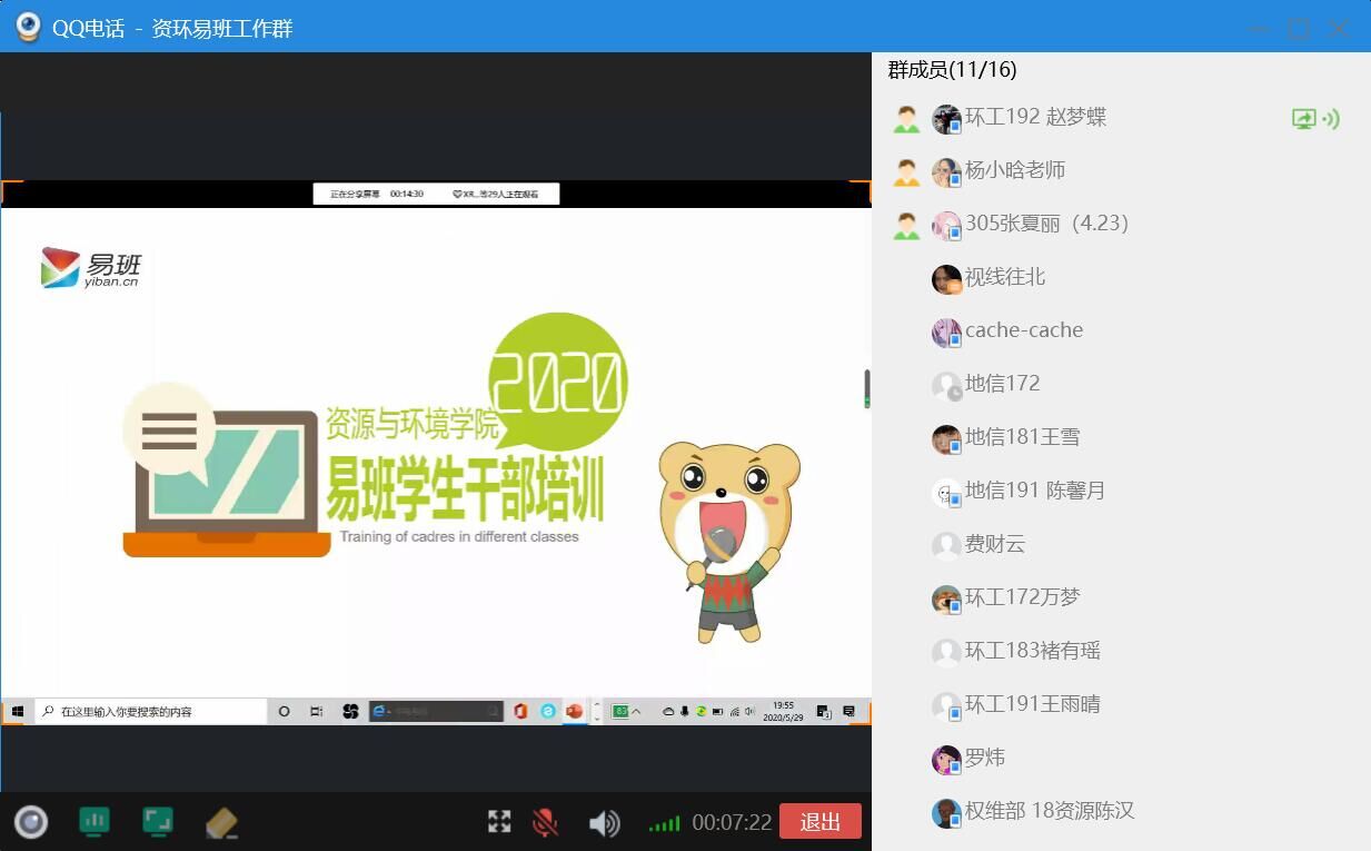 为保障学院易班工作的顺利开展,让班级学生干部更加了解易班工作,5月29日晚,资源与环境学院开展易班学生干部培训,院易班工作站成员及非毕业班易班负责人参加此次培训,培训由学院易班指导老师杨小晗主持。
