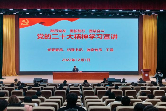 王强紧扣党的二十大报告原文,从“过去五年的工作和新时代十年的伟大变革”、“开辟马克思主义中国化时代化新境界”、“新时代新征程中国共产党的使命任务”、“实施科教兴国战略,强化现代化建设人才支撑”、“坚定不移全面从严治党,深入推进新时代党的建设新的伟大工程”等方面,对党的二十大精神作了系统深入的宣传解读。他还结合学校事业发展,对全体师生提出殷切希望。