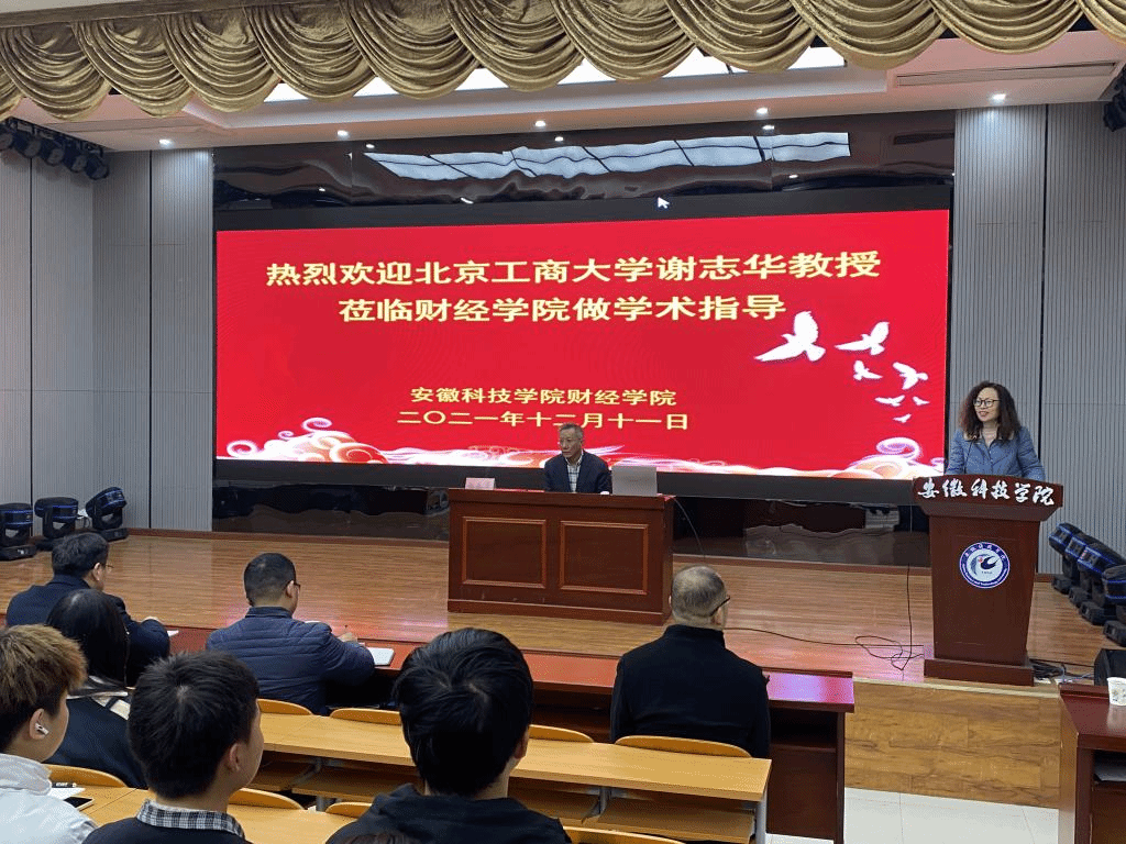 2021年12月11日上午,北京工商大学原副校长、现任教育部工商管理学科指导委员会副主任委员谢志华教授应邀莅临我校财经学院指导新商科专业建设,安徽财经大学会计学院院长翟胜宝教授随行指导。谢志华在敏行楼A一楼报告厅做了题为“新技术与新商科”的学术讲座,米乐官方网站_米乐(中国)股份有限公司,党委委员、副校长黄友锐、教务处处长赵伟峰、财经学院党政领导和全体教职工以及2021级会计学、2021级金融工程专业学生参加报告会。财经学院院长郝世绵主持报告会。