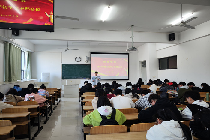 为加强学生干部管理,进一步优化工作作风,全面推动新学期学生工作,3月7日中午,财经学院在龙湖校区致知楼C108召开学生干部会议。学院纪委副书记、团委书记薛枫出席会议。各班班长、团支书参加会议。会议由院团委兼职副书记赵博闻主持。