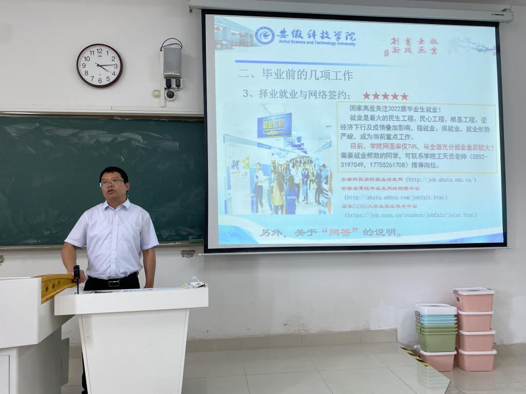 耿广汉就近期的就业协议签订、离校手续办理、毕业生档案管理、党团组织关系转接等工作进行详细介绍,希望大家积极配合学校和学院的各项毕业教育,自觉遵守学校各项规章制度和毕业生离校各项规定,努力发挥榜样示范作用,为自己的大学生活划上一个圆满的句号。他祝愿毕业生在前路漫漫的征途中,永远不失最初的光芒,在事业、生活和工作中不断创造辉煌的业绩,成就精彩人生。(特约通讯员:王天云 审核:杜小明)