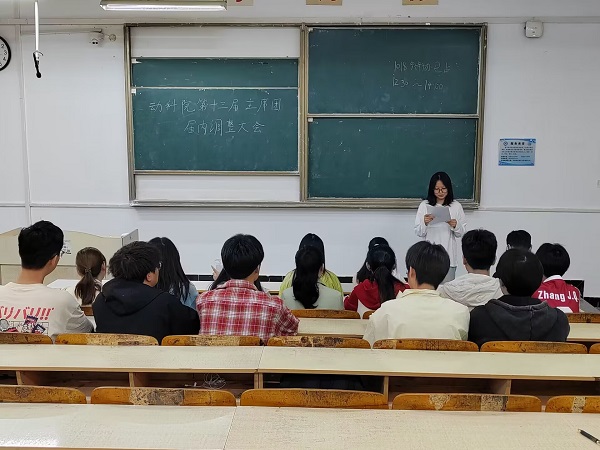 会上,刘成义宣读了《动物科学学院学生会学生干部调整名单》,上任学生会主席范馨雅作工作总结,并对新一届学生会成员提出了宝贵的建议。新任学生会执行主席许倩倩代表新一任学生会主席团作代表发言,提出今后工作设想,表明学生会将再接再厉,做好学生服务工作,认真完成学院布置的有关任务。