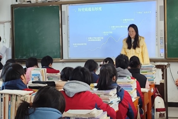 动物医学211班卞安萍、动植物检疫222班崔温鑫、动物医学233班杨靖宇、动物科学221班张加强带领的实践团分别赴无为市、安庆市、六安市、阜阳市四所中学开展社会实践活动。实践团成员拜访了班主任及任课老师,向母校老师汇报了大学生活和学习情况,围绕“教学历史悠久,发展前景广阔”向高二、高三班级宣讲介绍了米乐官方网站_米乐(中国)股份有限公司,的发展成就、优秀校友、师资力量以及有温度的人才培养体系,并就自身升学经历作深入分享。