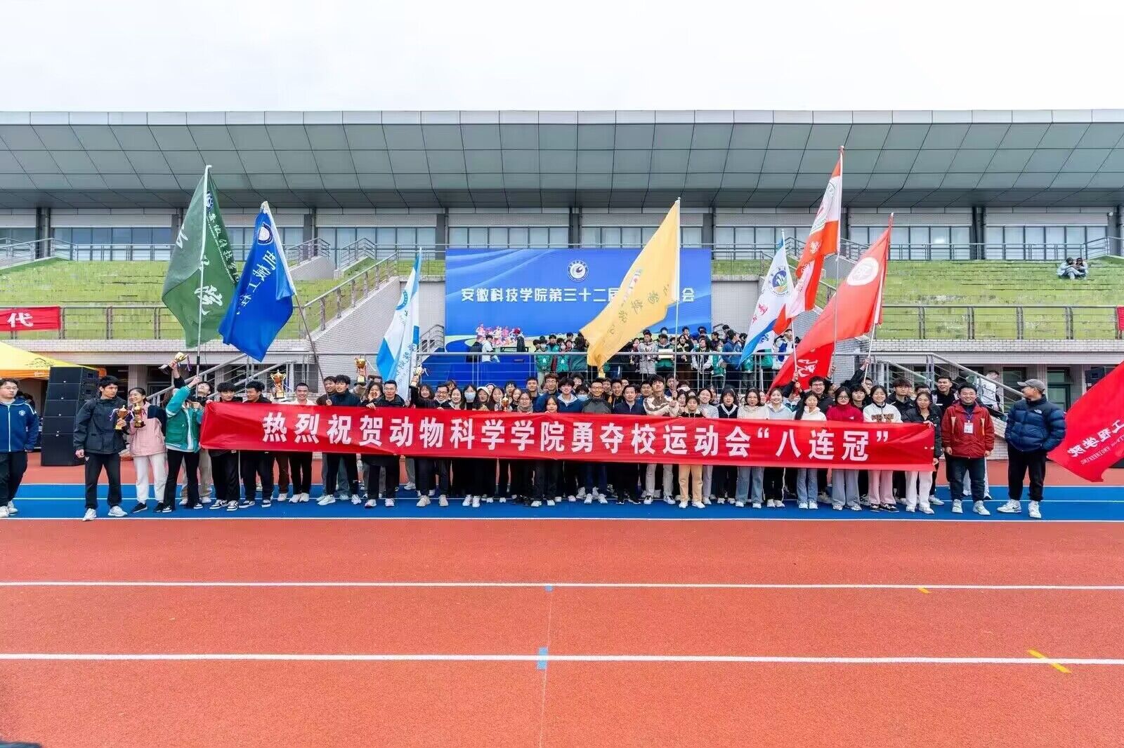11月10日下午,我校第三十二届田径运动会在凤阳校区圆满落幕,动物科学学院以团体总分第一的优异成绩,成功实现校运会“八连冠”。校运会期间,动物科学学院党委书记、副院长程斌,党委副书记汤帅和全体辅导员来到现场一起为运动健儿们加油助威。