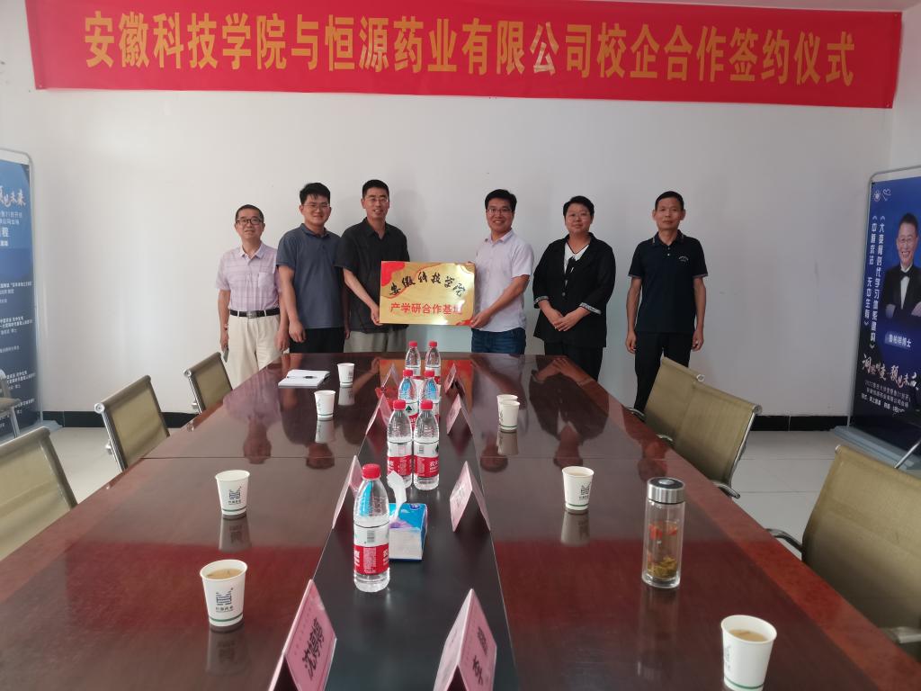 仪式上,学校与安徽恒源药业有限公司签订了产学研合作协议,举行了“产学研合作基地”授牌仪式,并现场参观了公司的实验基地。(特约通讯员:胡文丽 审核:汤帅)
