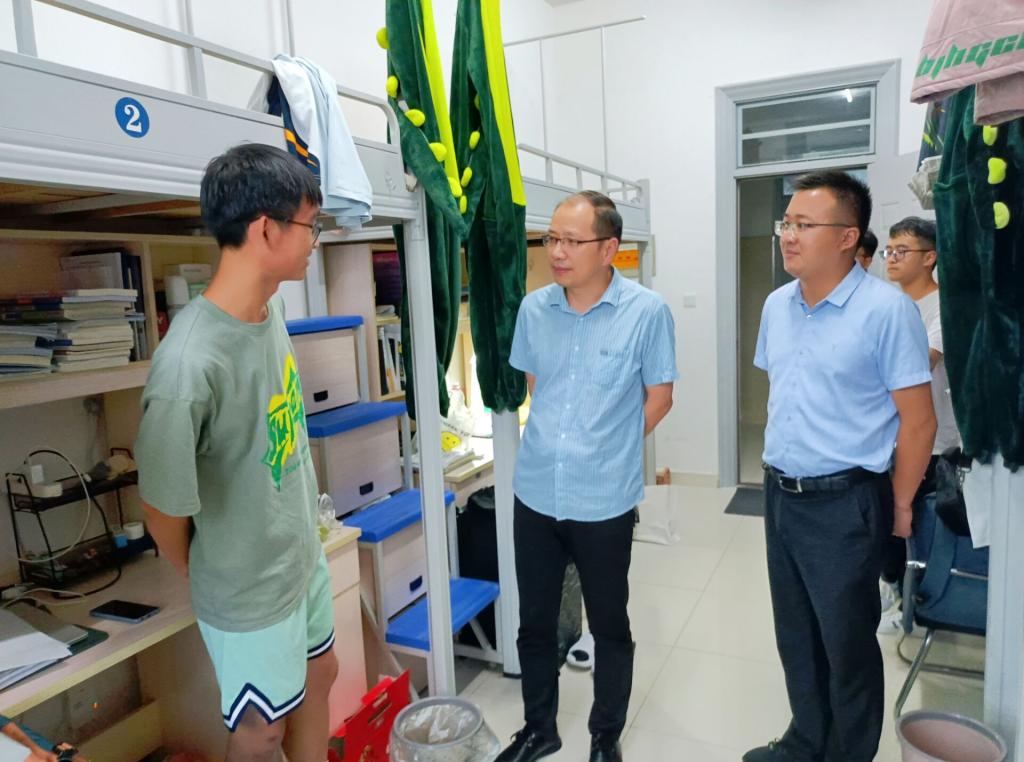 为深入了解返校学生宿舍生活情况,进一步摸清学生思想动态,近日,管理学院党委书记丁景良、党委副书记陶漫率全体辅导深入学生宿舍看望返校学生,并开展宿舍安全排查。