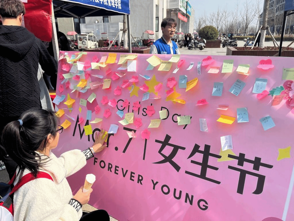 为丰富校园生活,营造关爱女生的浓厚氛围,3月7日,伴随着女生节主题展板的推出,由管理学院学生会与电气与电子工程学院学生会联合举办的“三七女生节—心愿便利贴”活动在龙湖校区小广场顺利展开。