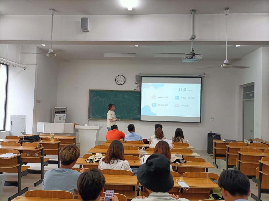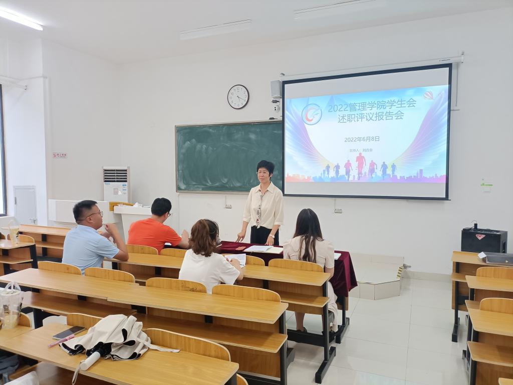 近日,管理学院团委组织开展院学生会2021-2022学年述职评议报告会,学院党委副书记陶漫、团委副书记江旭聪、学生会指导老师姚姝媛、社团管理部指导老师黄斐出席会议。校学生会主席团成员戴家珍应邀到会指导。