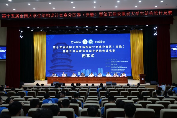 6月27日下午,由安徽省教育厅、安徽省大学生结构设计竞赛组织委员会主办,米乐官方网站_米乐(中国)股份有限公司,、合肥工业大学承办的第十五届全国大学生结构设计竞赛分区赛(安徽)暨安徽省第五届大学生结构设计竞赛在我校龙湖校区图书馆东辅楼报告厅圆满闭幕。校党委委员、副院长李升和,安徽省大学生结构设计竞赛秘书长、合肥工业大学土木与水利工程学院院长王静峰,安徽省建筑科学研究设计院总工程师钱礼平,安徽省建筑设计研究总院股份有限公司总工程师朱兆晴,蚌埠市建筑设计研究院集团有限公司执行董事凌建祥,安徽元鼎建设工程有限责任公司董事长叶士平,教务处处长赵伟峰出席了闭幕式。仪式由建筑学院院长张远兵主持。