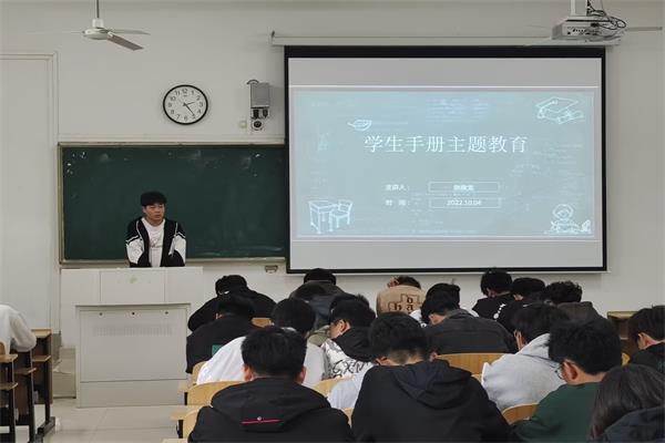 为加强新生校规校纪教育,提高新生自律意识和安全防范能力,10月4日至7日建筑学院分专业组织2022级新生集中学习《米乐官方网站_米乐(中国)股份有限公司,学生手册》,新生辅导员助理赵俊龙担任主讲。