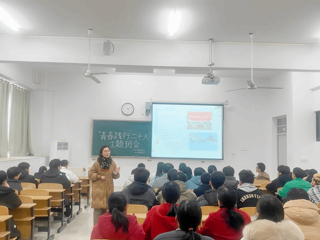 为引领学生深入学习宣传贯彻党的二十大精神,3月17日,建筑学院在致知楼C105开展新学期第一次“青春践行二十大”主题班会观摩活动。主题班会由2022级建筑学专业辅导员沈德艳主持,建筑学院党委书记傅友福,党委副书记谢宜勤,财经学院、建筑学院全体辅导员观摩,2022级建筑学专业全体学生参加。